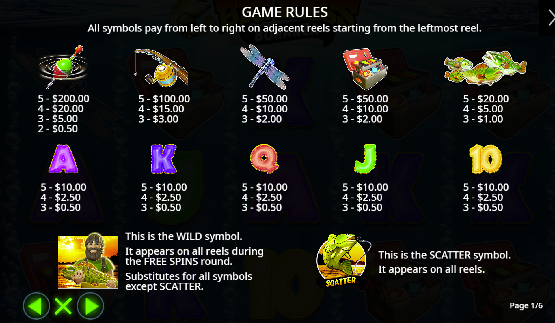 - Casting Wilds Feature: Random base game feature where the fisherman throws wilds onto the reels.